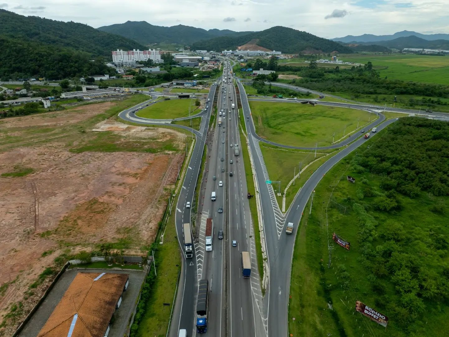 A inovação garantiu o término da obra dos dois elevados, na interseção entre a SC-486 e a BR-101, nove meses antes do prazo. O projeto recebeu investimento de aproximadamente R$ 60 milhões e ajudou a resolver um dos principais gargalos de mobilidade do Litoral Norte catarinense.