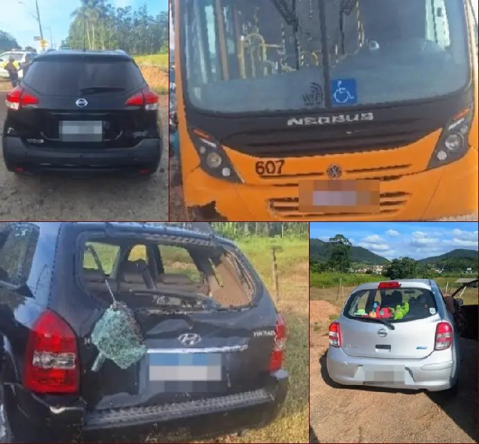 Segundo informações da Polícia Militar Rodoviária, o acidente envolveu um Nissan March, um Nissan Kicks, uma Hyundai Tucson e um ônibus.