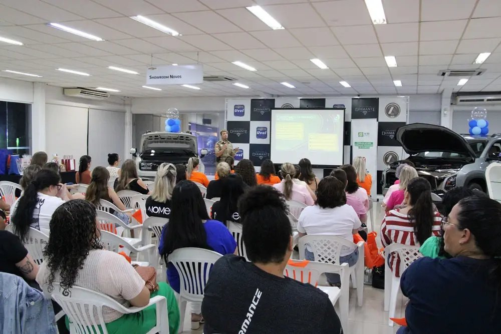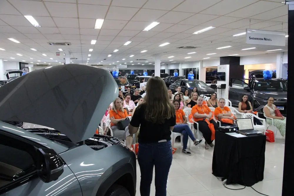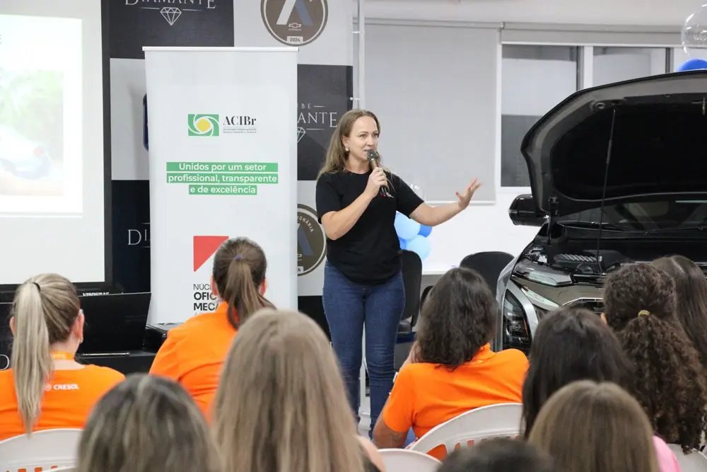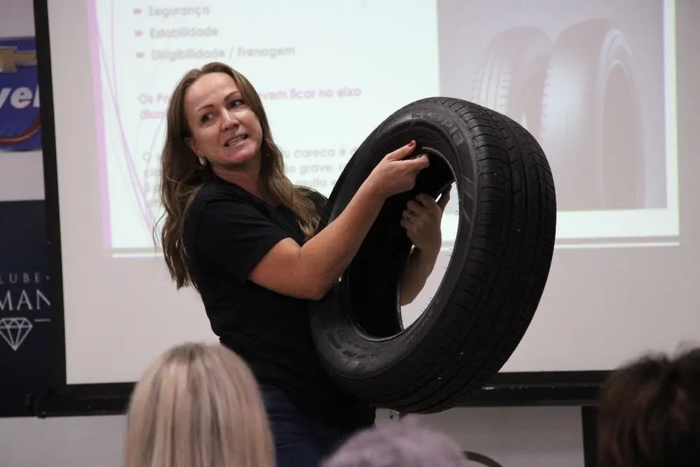 A importância do conhecimento básico sobre mecânica e da autonomia feminina no trânsito marcou o último momento do evento, com a aula ministrada pela proprietária da Brusque Autocenter e nucleada, Carla Ern. Durante sua fala, ela reforçou o propósito de aproximar as mulheres do funcionamento de seus veículos e da tomada de decisões no dia a dia.