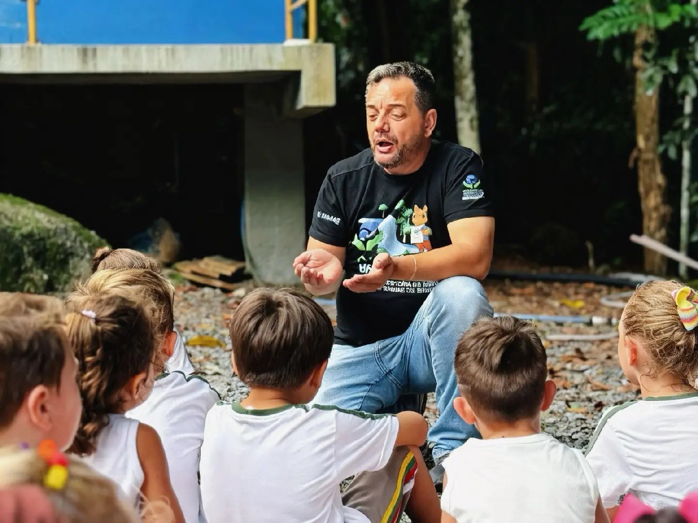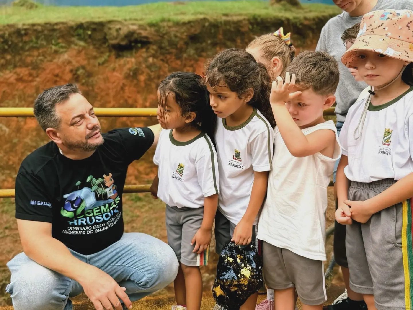 A visita envolveu turmas da pré-escola, incluindo alunos do pré-1 e pré-2, que já vinham trabalhando o tema em sala de aula por meio de um projeto pedagógico voltado à conscientização ambiental.
