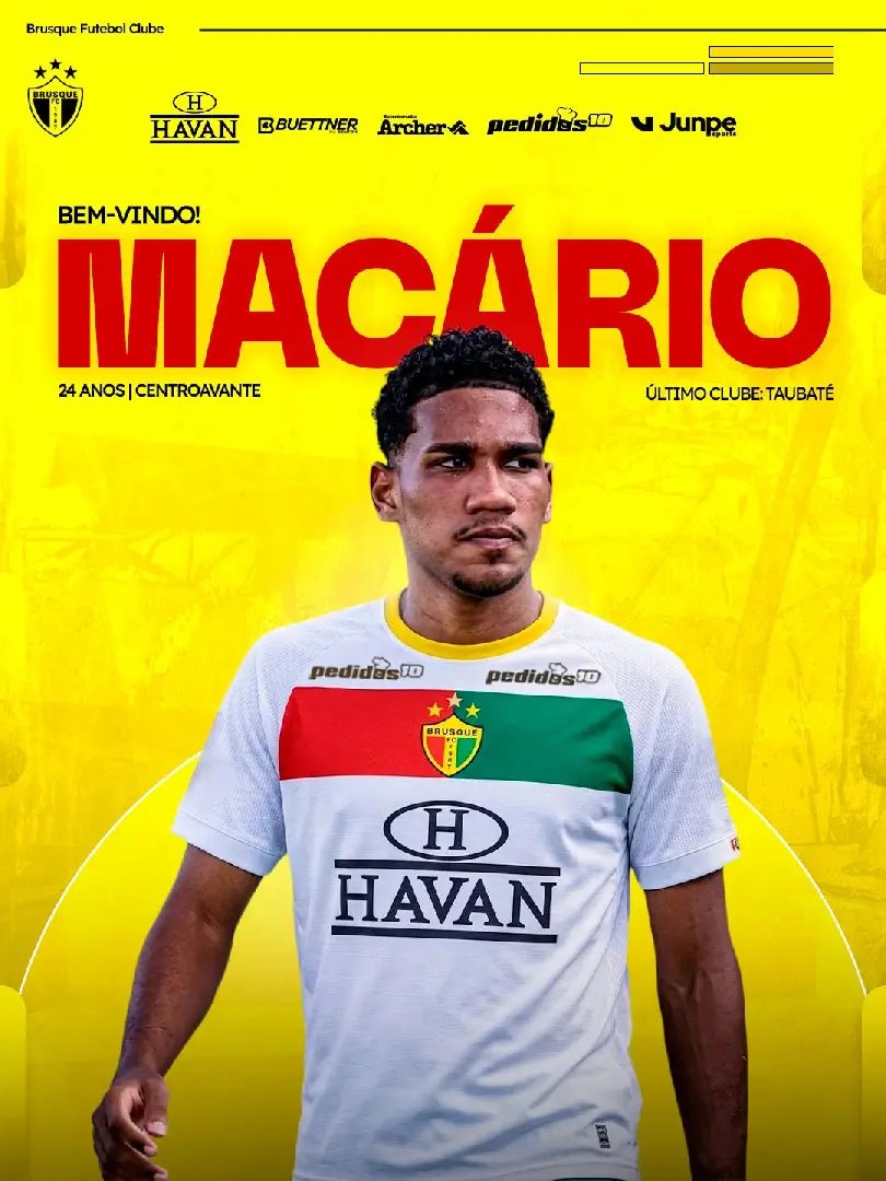 Outro nome anunciado foi o centroavante Macário, de 24 anos. O jogador tem passagens por Ponte Preta e Volta Redonda, e chega após atuar pelo Taubaté, onde foi artilheiro do Paulista A2 de 2026 com oito gols.