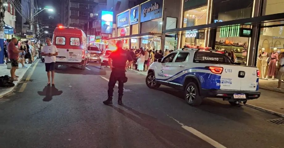 Uma pedestre ficou ferida após ser atingida por uma motocicleta na noite de sábado (21), em Balneário Camboriú. O caso foi registrado por volta das 20h20, na Avenida Brasil, região central da cidade.