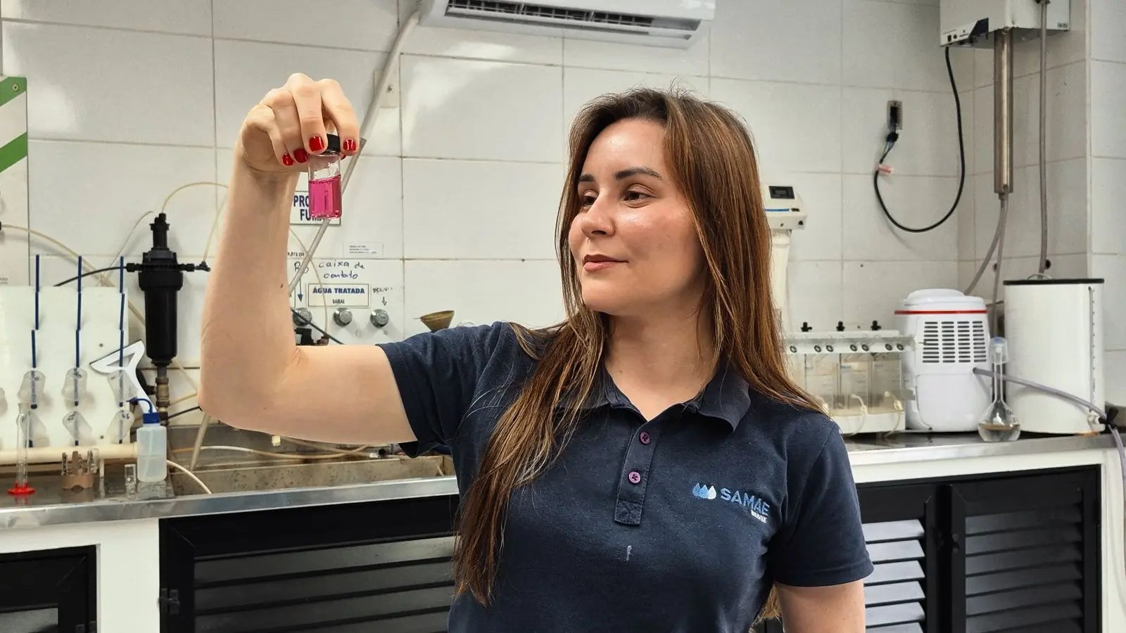 A agente de ETA, Nívia Alencar, também destacou o trabalho técnico realizado diariamente no tratamento da água. “Aqui no Samae nós temos uma equipe qualificada e comprometida com o tratamento da água para a população de Brusque. Hoje, mais de 80% da cidade é abastecida pelo rio Itajaí-Mirim, com uma vazão média de 350 litros por segundo, já com projeto de ampliação”, explica.