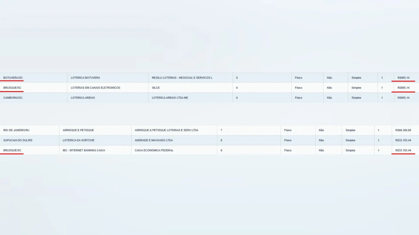 Já em Botuverá, uma aposta também acertou quatro dezenas e faturou R$ 985,14.