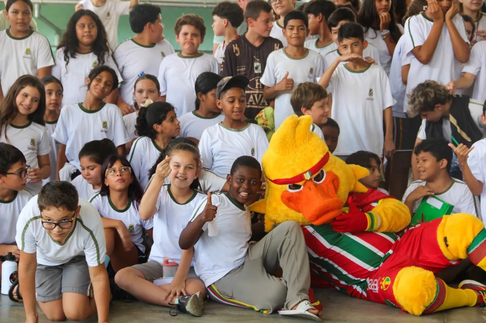 Durante esta sexta-feira (27), a Escola de Ensino Fundamental Professora Augusta Knorring (EEF) recebeu jogadores e o mascote do Brusque Futebol Clube (FC). O projeto “Bruscão Desde Pequeno" é uma parceria entre a equipe e a Secretaria de Educação, com com o objetivo de aproximar os alunos do esporte e do time.