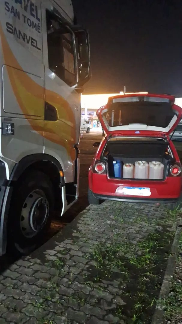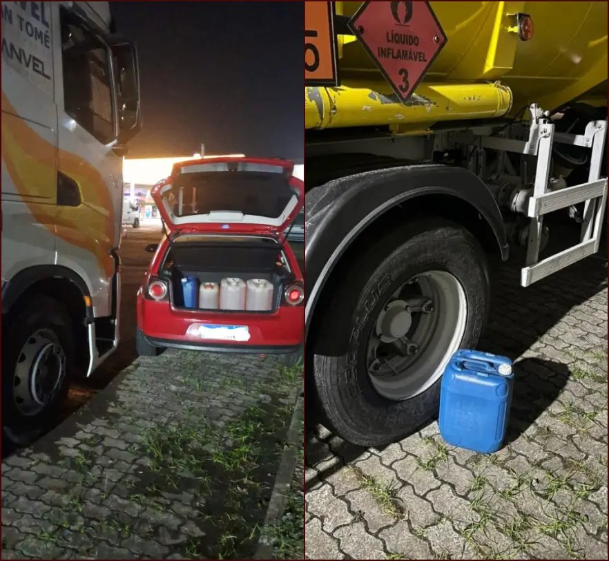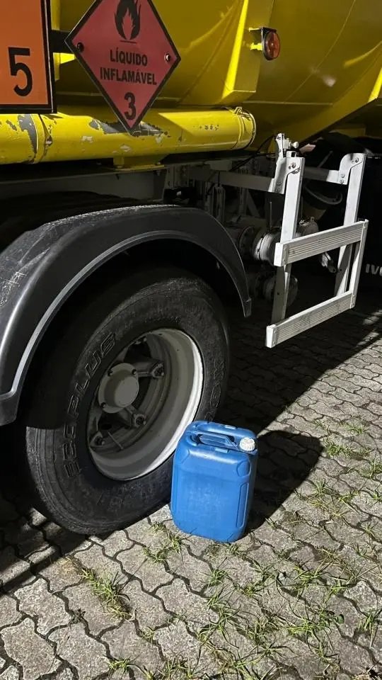 Durante a abordagem, ele apresentou versões contraditórias, afirmando inicialmente que teria autorização para a retirada do combustível e, depois, que estaria realizando manutenção.