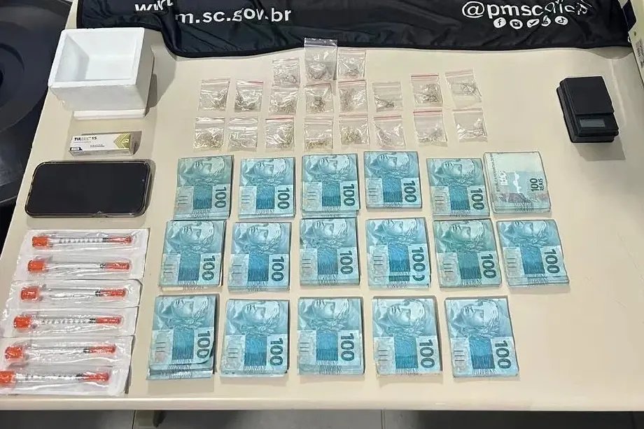 Um motociclista de 25 anos foi preso após tentar fugir da Polícia Militar com drogas, canetas de Mounjaro e mais de R$ 17 mil em dinheiro, na noite da última terça-feira (31), por volta das 18h30, no bairro Vila Esperança, em Tubarão.
