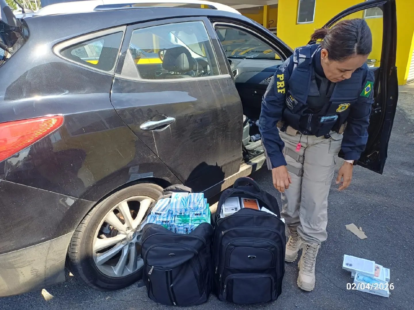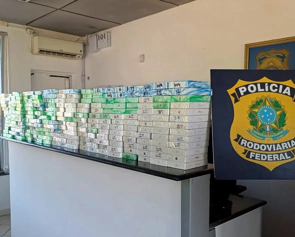 Segundo a PRF, os produtos estavam escondidos em mochilas dentro de um carro abordado em Araquari. Ao todo, foram encontrados 475 iPhones, além de 11 smartwatches, cinco tablets e 38 relógios de pulso.