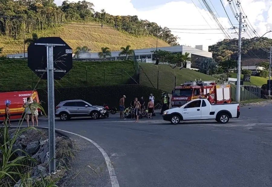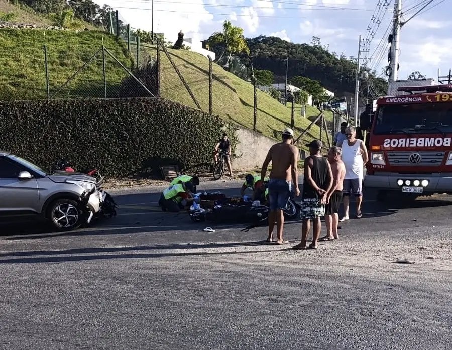 Uma colisão entre moto e carro deixou um homem gravemente ferido na manhã deste sábado (4), na rua Ivo Silveira, no bairro Bateas, em Brusque.