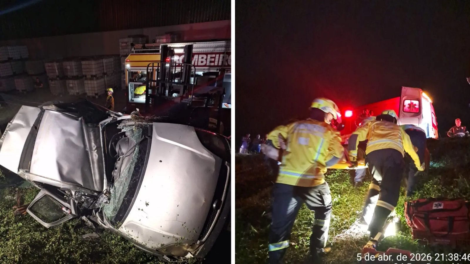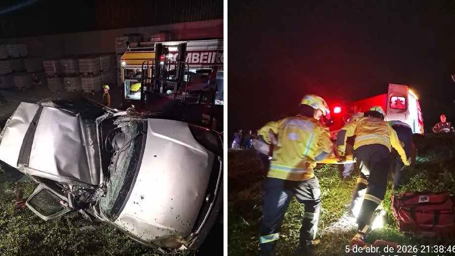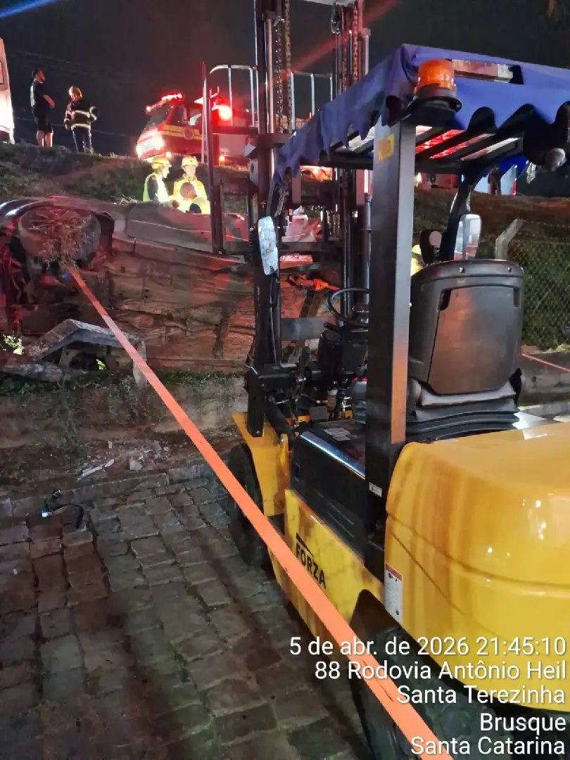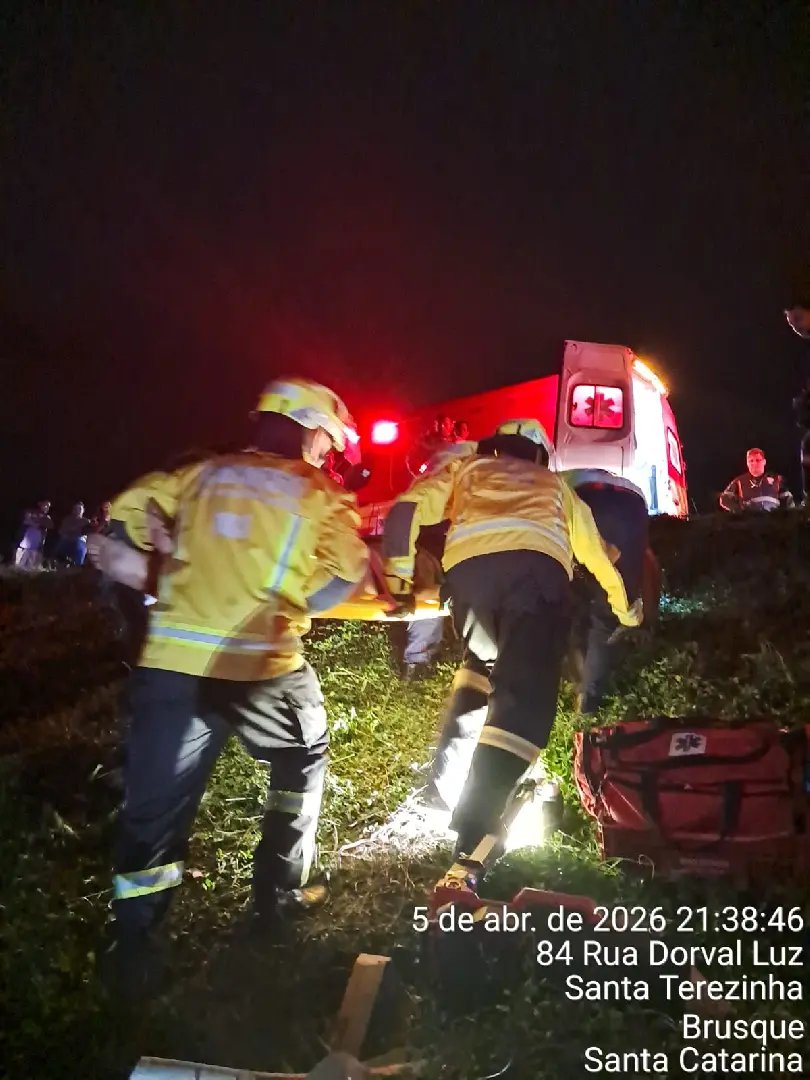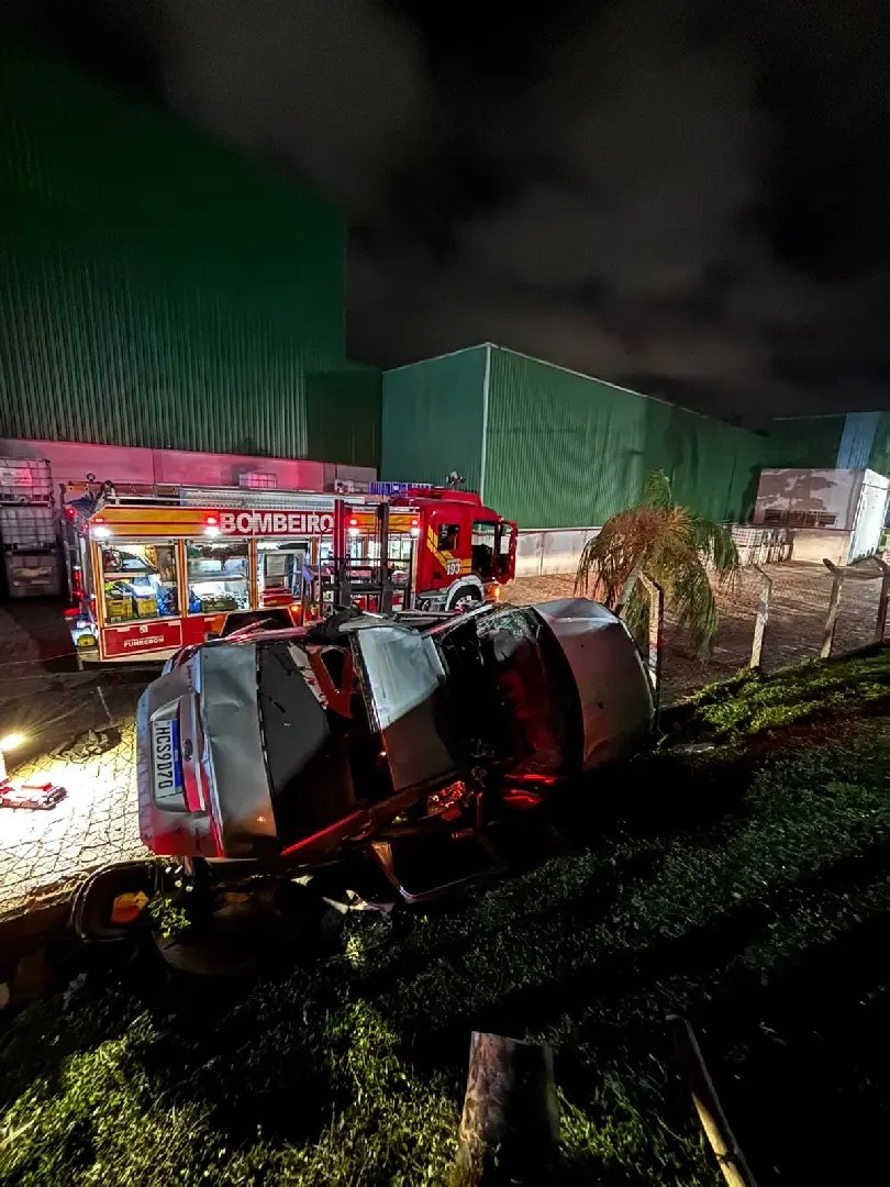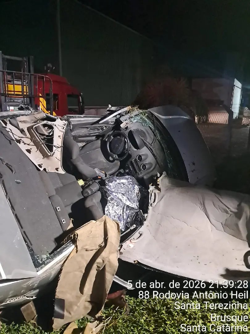Um carro saiu de pista e tombou em um barranco às margens da Rodovia Antônio Heil, no bairro Santa Terezinha, em Brusque. O acidente aconteceu por volta das 20h50, e deixou o motorista encarcerado e desorientado dentro do Ford Fiesta.