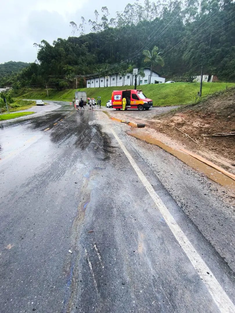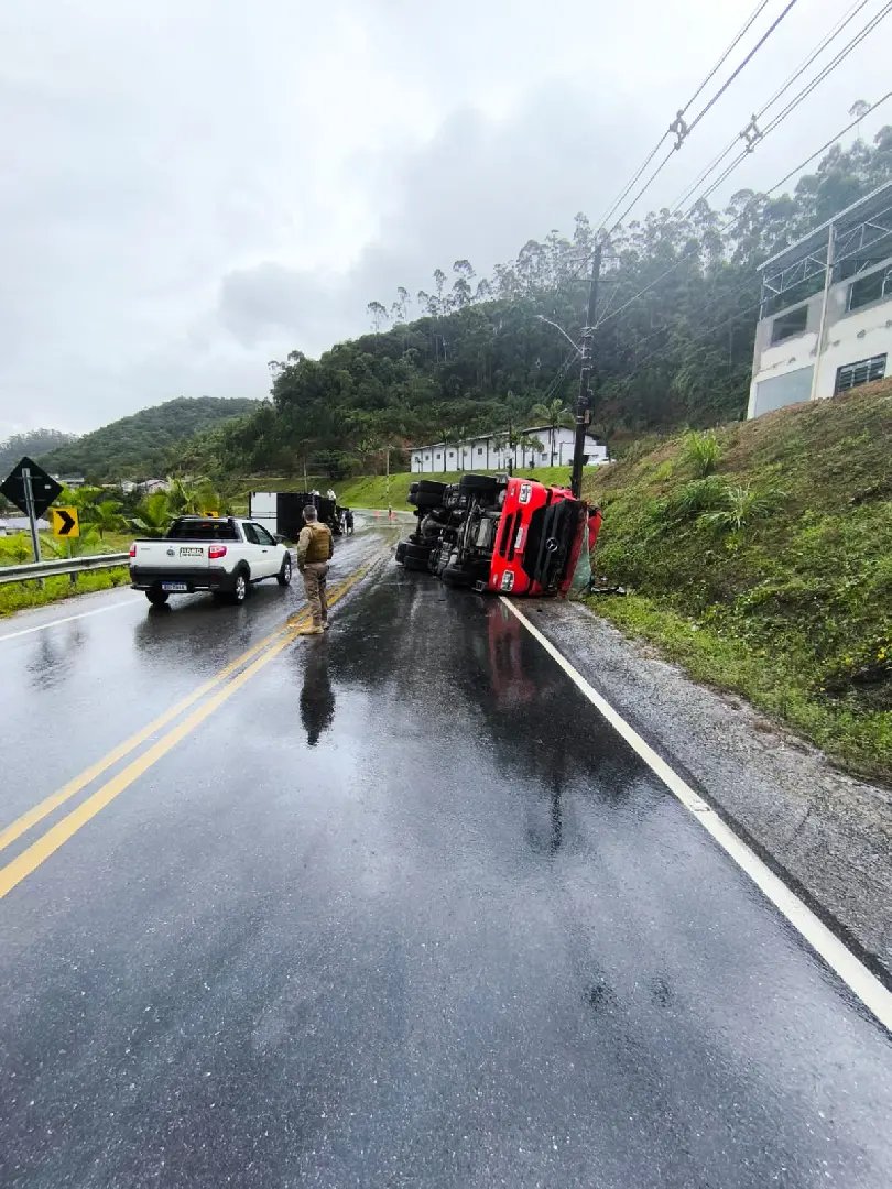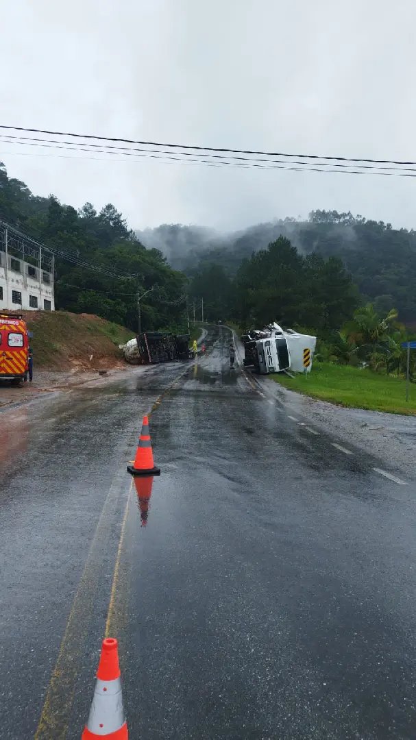 Na tarde desta segunda-feira (6), o Corpo de Bombeiros atualizou as informações sobre a colisão entre dois caminhões registrada na rodovia SC-486, no Centro de Botuverá. O acidente aconteceu por volta das 12h44 e foi do tipo frontal-lateral, envolvendo um caminhão baú e uma carreta.