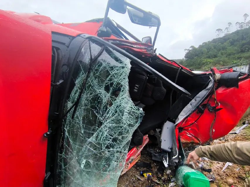 Já o motorista da carreta, de 52 anos, foi encontrado fora do veículo, consciente e orientado. Ele apresentava ferimentos cortantes na mão, cotovelos e na cabeça, causados por estilhaços de vidro.