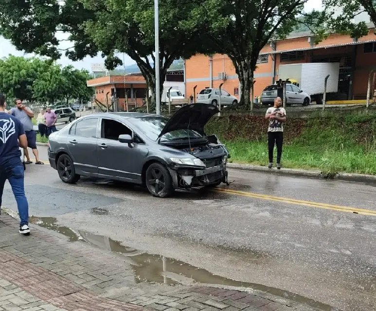 Imagens enviadas à reportagem da Rádio Cidade mostram que o veículo, um Honda Civic, teve a parte frontal bastante danificada após a colisão.