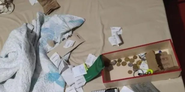 Após as agressões, os criminosos amarraram as mãos da vítima e amordaçaram sua boca. Em seguida, foram até o quarto, onde encontraram cerca de R$ 2 mil guardados em um guarda-roupa. Eles ainda tentaram levar uma caixa de cigarros, mas desistiram após vizinhos perceberem a ação e gritarem.