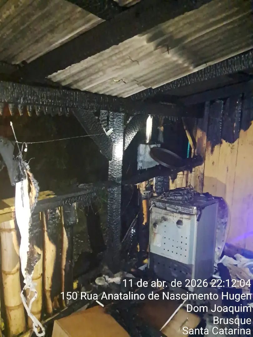 O foco do incêndio estava localizado nos fundos da residência, em uma área de serviços onde funcionava uma pequena oficina de uso próprio. No local, havia móveis armazenados e uma motocicleta Bajaj Pulsar, que acabaram sendo danificados pelo fogo.