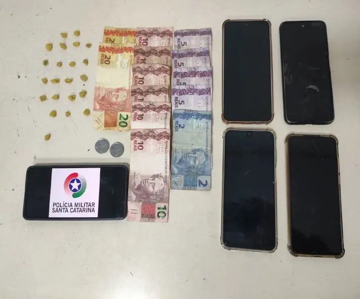 Na revista pessoal, com o jovem de 18 anos foram encontradas 22 pedras de substância semelhante ao crack, já fracionadas e prontas para venda, além de R$ 123 em dinheiro, em notas de baixo valor. Com os demais, nada de ilícito foi localizado, porém todos portavam aparelhos celulares, que foram apreendidos por poderem conter informações relevantes para a investigação.