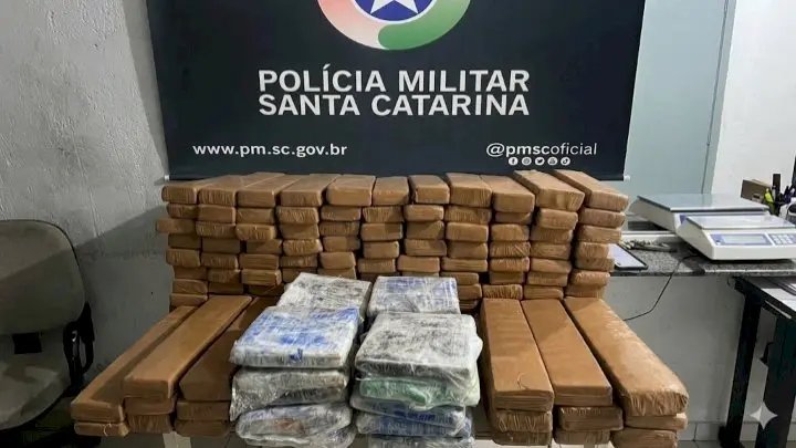 Um veículo foi interceptado pela Polícia Militar transportando mais de 120 quilos de maconha na noite de segunda-feira (13), por volta das 23h, na BR-101, em Tijucas.