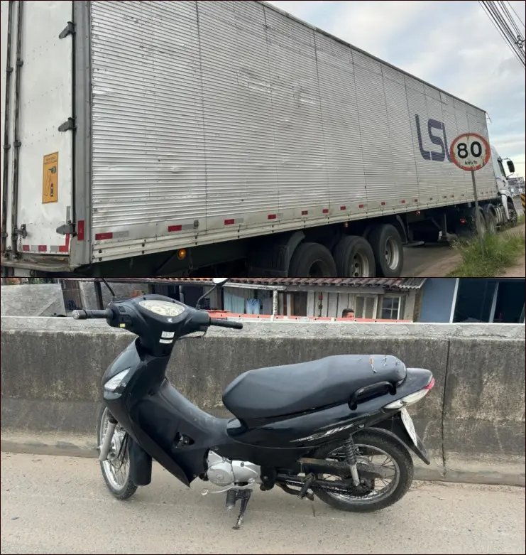 Segundo a Polícia Militar Rodoviária, o caminhão trator seguia no sentido Brusque para Itajaí quando, nas proximidades do km 1,300, a moto Honda Biz 125 acabou colidindo na parte traseira do semirreboque.