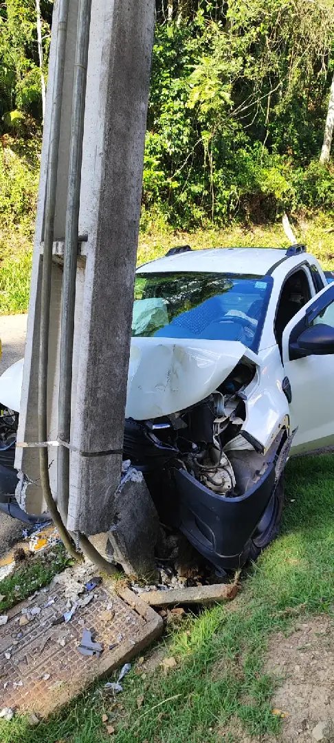 Um motorista bateu o carro contra um poste durante a tarde desta quinta-feira (16), por volta das 15h. Foi necessário o apoio de três guarnições dos bombeiros para atender a ocorrência na Rua Fernando Krauss, no bairro Gasparinho, em Gaspar.