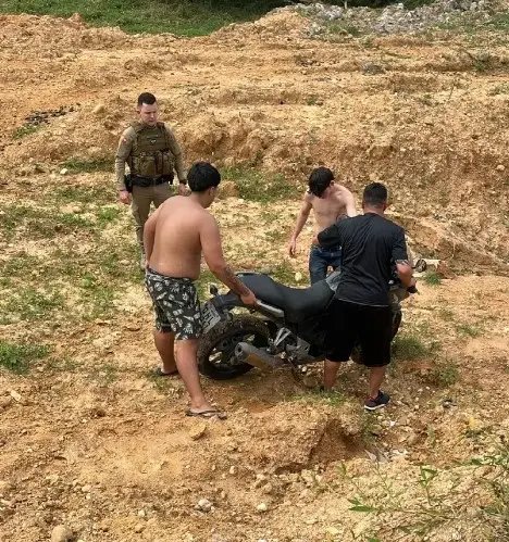 Moradores do bairro Planalto, em Brusque, encontraram uma moto que havia sido furtada durante a madrugada desta terça-feira (21). O achado foi feito pela manhã por crianças e jovens que brincavam em um terreno na Rua 25 de Junho, onde ela estava abandonada.