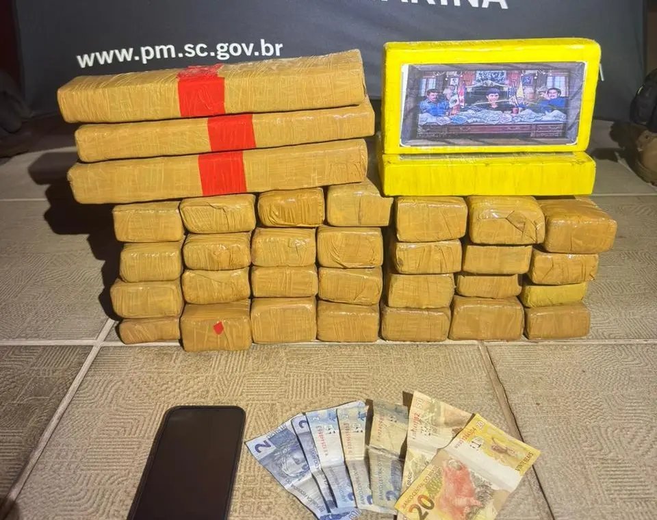 Na abordagem, nada de ilícito foi encontrado com o condutor, mas, durante a vistoria no veículo, foram localizados aproximadamente 19,7 quilos de maconha, divididos em 31 tabletes, e cerca de 2,1 quilos de cocaína.