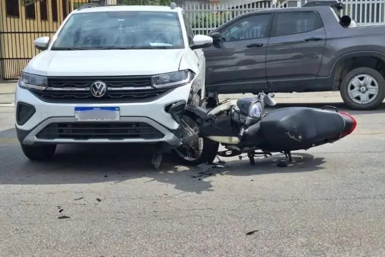 Um acidente de trânsito envolvendo um carro e uma motocicleta foi registrado na manhã deste sábado (25), na Rua Sete de Setembro, no bairro Santa Terezinha.