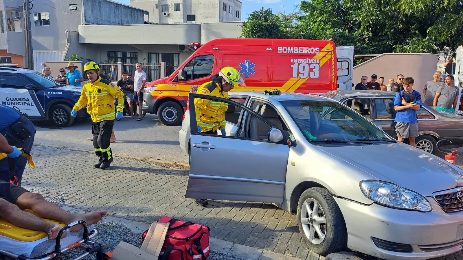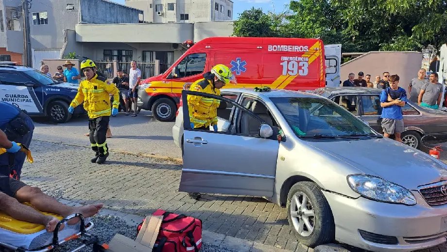 Uma colisão lateral deixou uma pessoa presa às ferragens e mobilizou equipes de resgate na tarde deste sábado (25). O acidente foi registrado por volta das 15h25, na rua 428, no bairro Morretes, em Itapema.