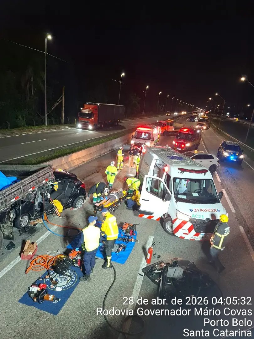 Equipes realizaram o resgate com apoio da ambulância avançada da Arteris. Após a retirada, a vítima foi encaminhada à UPA de Porto Belo.