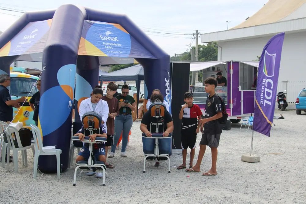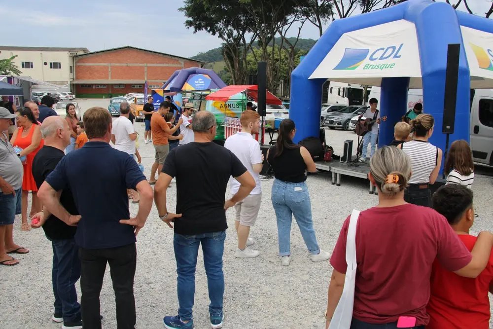 A manhã de sábado, 25 de abril, foi de intensa movimentação no pátio da Paróquia Santa Catarina, durante mais uma edição do Super Sábado do bairro Dom Joaquim, promovido pelo Núcleo de Dom Joaquim da Câmara dos Dirigentes Lojistas de Brusque (CDL Brusque). A ação reuniu famílias em uma programação gratuita, com atrações voltadas a todas as idades e foco na valorização do comércio local.